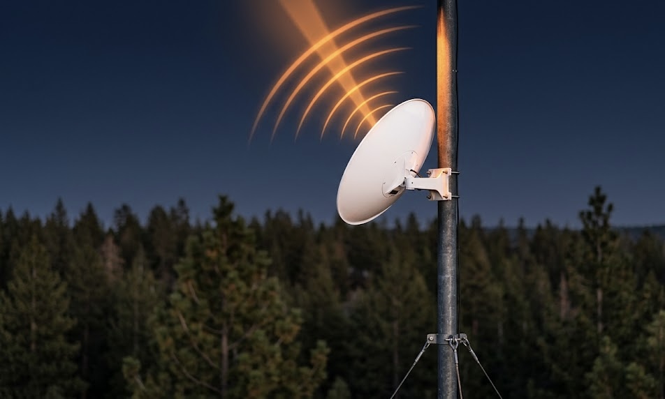 Starlinkは地上の基地局に頼らないため、山奥でも使えます。                               宇宙の衛星から直接電波を受け取る仕組みなので、地形や地上インフラの影響を受けません。