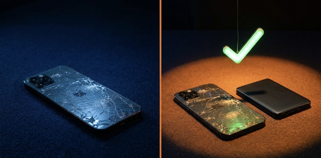 画面が完全に割れて起動不能。3年分の現場写真が消えたと思いました。